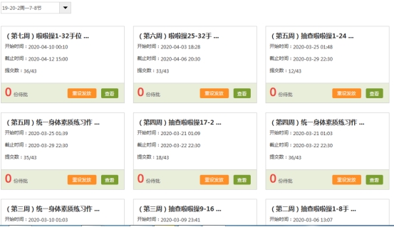 体育课线上教学课后作业是反映学生线上学习和课后练习效果的主要途径,好的作业是对线上教学最好的反馈之一,学生完成的好,老师也很欣慰!