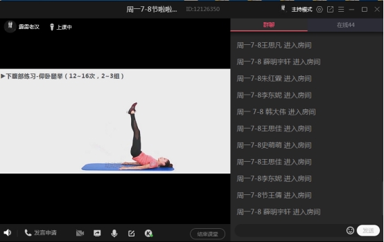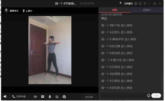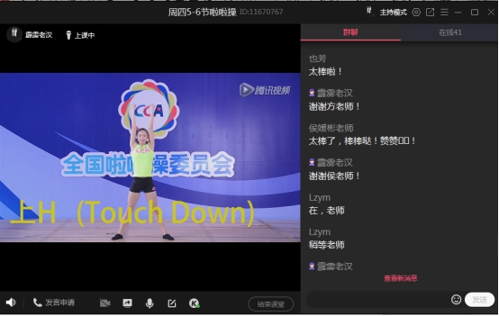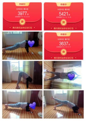 1.学习通讨论区提出问题,学生回答。 2.QQ群课堂点名学生回答,并进行交流讨论。 3.问题1:练习啦啦操手位时应注意什么?(点名) 4.问题2:请简单表述啦啦操25-32个手位。 5.问题3:人体所需的七大营养素分别是什么? 6.问题4:运动前禁忌吃什么成分的食物? 7.问题5:运动中补水的原则是什么? 组织方法: 1.指定部分学生练习后将图片或视频通过QQ小窗口发给教师 2.如果有学生感觉运动量有些大,可延长间歇时间或少做一组 3. 内容及要求: (1)俯卧撑(男)、跪撑(女)10个2组(组间间歇30秒)--休息1分钟; (2)开合跳20次2组(间歇30秒)--休息1分钟; (3)平板支撑1分钟2组(间歇30秒)--休息1分钟; (4)俯撑后举腿10次2组(间歇30秒)--休息1分钟; (5)俯撑手脚对侧上举8次2组(间歇30秒)--休息1分钟; (6)熊爬8次2组(间歇30秒)。 1.学习通第2次签到(10分钟时限) 2.播放疫情防控先进事迹宣传片《非常时期那些走心的凡人金句》 (来源:学习强国) 3.学习通课程作业(100分): (1)上传啦啦操25-32手位练习视频(50%) (2)上传班级QQ群运动排行2次3000步以上截图(20%),身体素质练习图片或视频(30%)。 |