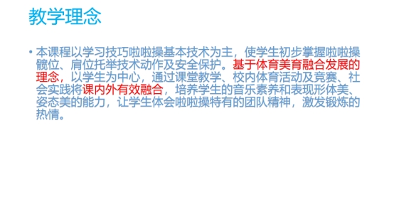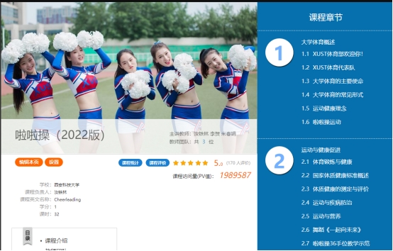 二、建设啦啦操MOOC,实行“健康知识+基本运动技能+专项运动技能”为目标的线上线下混合式教学模式。