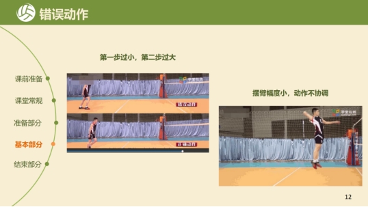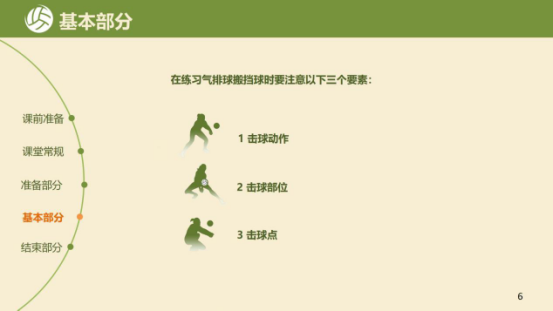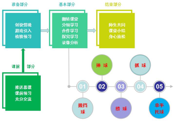 1.预习:发送气排球特有垫球技术的慕课,帮助学生在课前建立运动表象;采用了任务驱动法,教师制定学生分组教学的任务,学生明确目标,预习效果更佳。