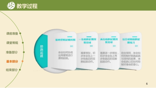 导 课 部 分 热 身 活 动 基 本 部 分 基 本 部 分 基 本 部 分 结 束 部 分 |