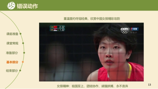 观看视频,积极分析并回答接球的重要作用。 分析中国女排在比赛中女排精神的体现。 |