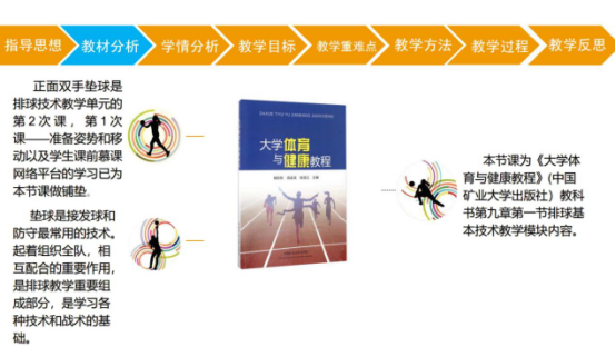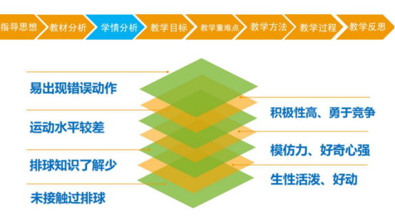 本节课的教学对象为选修过硬排的学生,拥有一定的排球理论基础和实践经验,有一定的运动水平,热爱排球,生性活泼、好动,模仿力、好奇心强,学习积极性高、勇于竞争、自我表现欲强。但硬排的基本功掌握的不够扎实,在学习气排球不同垫球技术时技术动作易变形出现错误。