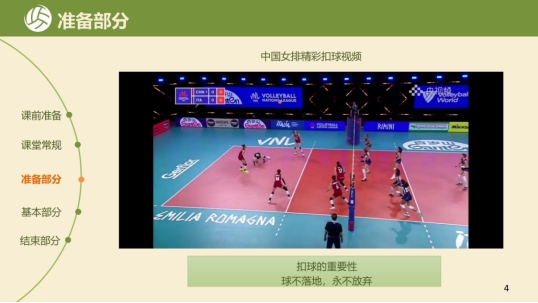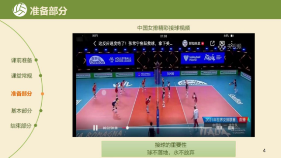 通过中国女排精彩的接球视频,激发了学生学习的兴趣,引导学生自主分析问题,沉浸式地学习中国女排精神。 |