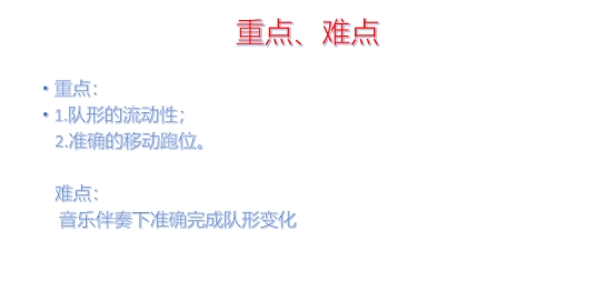1.队形的流动性编排。 2.准确的移动跑位。 |