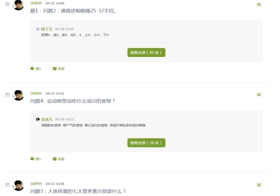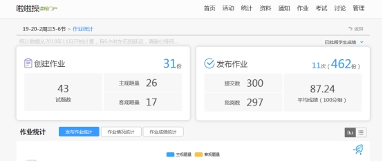 1.42名学生全部按时上下课,到课率100%; 2.学生回答问题积极,课堂素质练习视频认真规范; 3.第5周作业完成质量比较好,提交率95.2%,优秀率14.3%,合格率83.3%;2名学生未按时提交作业,1名学生作业内容缺少啦啦操1-24手位练习视频。 |