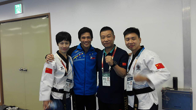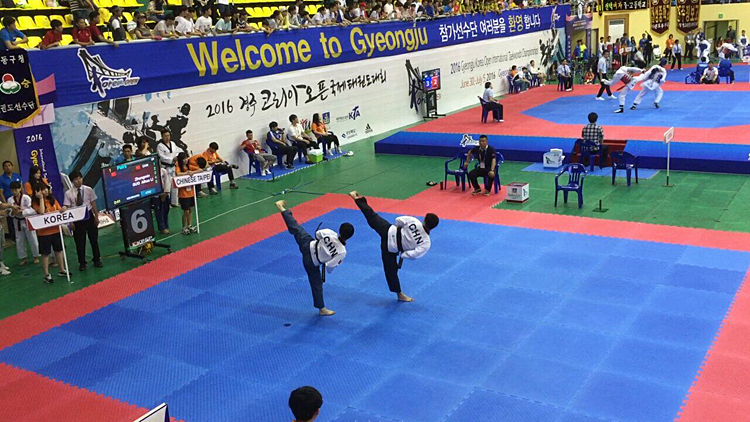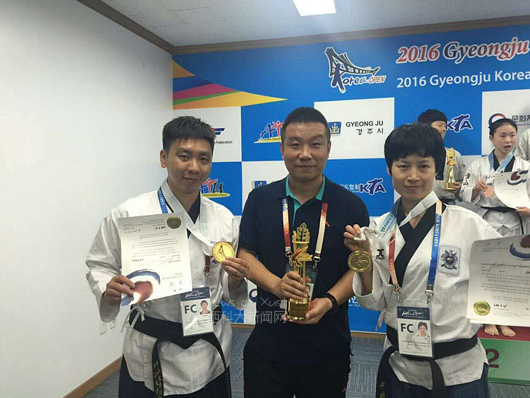 6月30日至7月5日,2016年韩国跆拳道国际公开赛在韩国庆州举行,我校英国上市官网365教师杨晓光由中国大学生体协跆拳道分会推荐、国家体育总局拳击跆拳道运动管理中心批准选调成为本次中国代表团教练组成员,负责男子个人品势、女子个人品势、混双品势等三个项目运动员的训练与竞赛工作。本次国际公开赛为奥运积分赛(G2),吸引了来自50多个国家上千名专业运动员参加。中国代表团参加了竞技和品势比赛。杨晓光带领的成年组混双品势运动员历经预赛、半决赛、决赛,分别击败了中华台北、新加坡、菲律宾等多支劲旅闯入决赛,并在决赛中以0.01分的微弱优势击败韩国代表队勇夺金牌。在个人品势比赛中,杨晓光还带领队员斩获两枚铜牌。