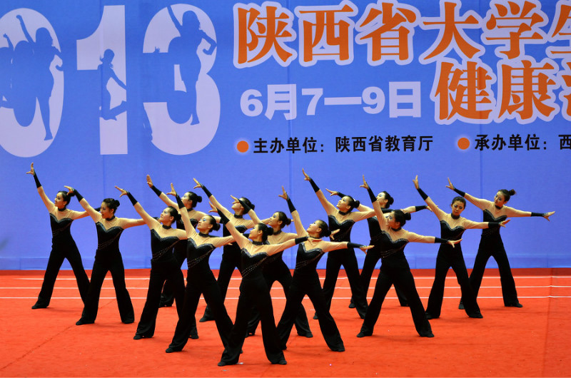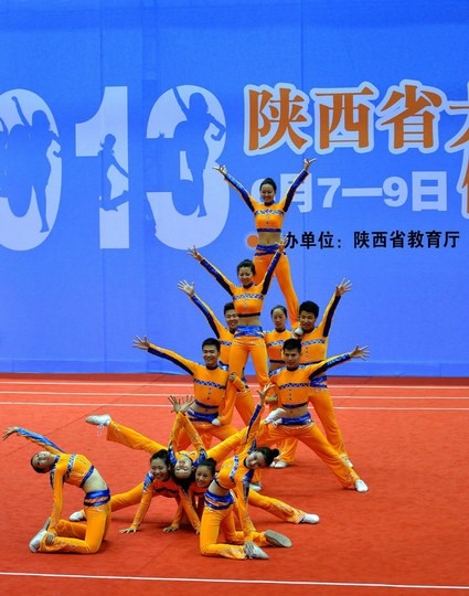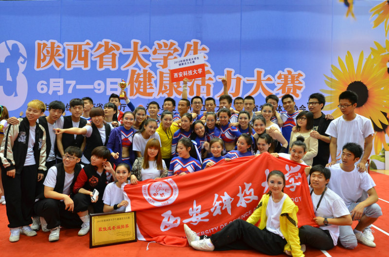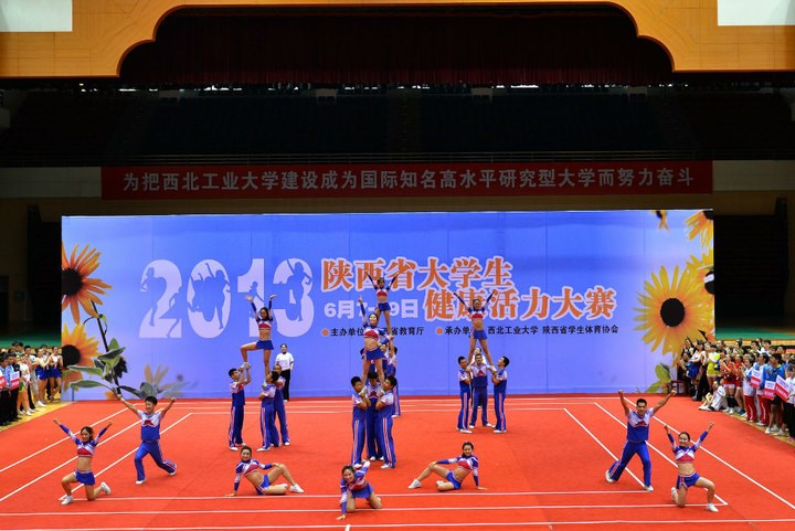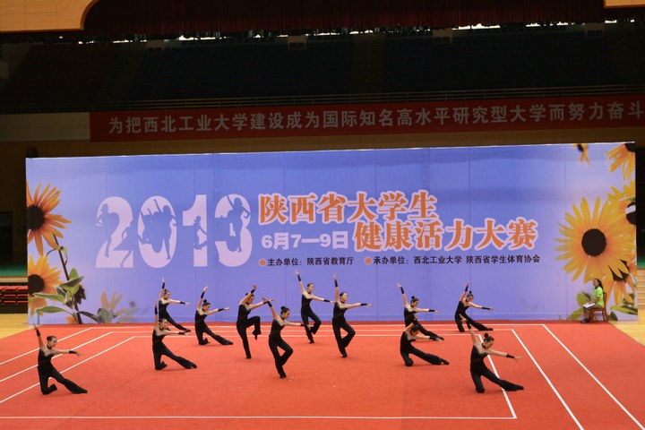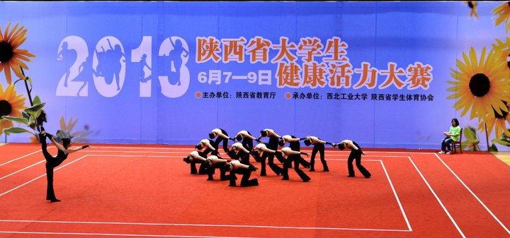 由陕西省教育厅主办,西北工业大学和省大学生体育协会承办的2013年陕西省大学生健康活力大赛于6月7日—9日在西北工业大学长安校区翱翔体育馆举行,本次大赛有来自46所高校,共1019名运动员参加,是历年来参与院校和人数最多的一次比赛。本次比赛我校共有44名运动员参加比赛,这批队员是我校2012年团体冠军的主力队员和今年体育节健康活力大赛中精心选拔出来的队员组成的新团队。