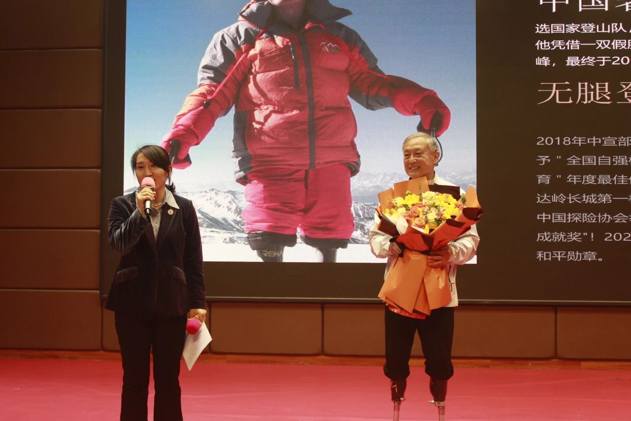 讲座中,夏伯渝先生用朴素真诚的语言和娓娓道来的方式生动再现了自己5次挑战极限、攀登珠峰,被迫撤退又不断坚持的非凡经历。他讲述了因让出睡袋给队友而导致双脚严重冻伤,被迫截肢,从对生活的绝望走向不屈服于命运的心路历程。他分享了自己如何在极限环境中保持冷静、突破自我能力边界的宝贵经验。他战胜万难,穿上假肢一次次去尝试突破各种不可能,在因雪崩/冰崩、地震、暴风雪等原因四次无缘登顶后,最终在69岁时第5次启程珠峰,成功登顶。