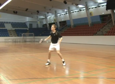 拍子在中间的位置,右脚在前。如果平行站,前后移动会很困难,右脚在前前后移动比较容易。每一次击球通过看球,移动,然后击球,然后再看球,再击球,做到连贯击球。