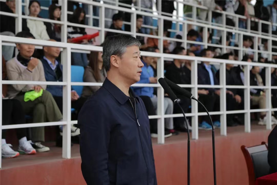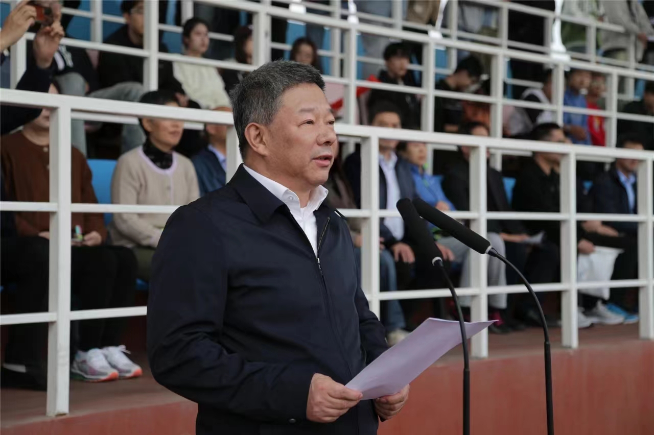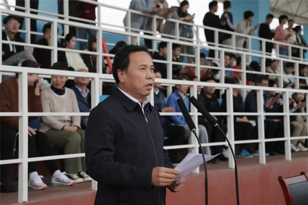 来兴平致开幕词,他首先代表校党委、校行政和本届体育节组委会学校向本届运动会的顺利召开表示热烈祝贺,并向全体运动员、裁判员表示亲切的问候,向筹备本次体育节的师生表示感谢。他表示,本次体育活动是我校全面落实习近平总书记关于教育、体育工作的重要讲话精神和习近平总书记历次来陕考察重要讲话重要指示精神的重要体现。同时,他对我校对体育工作的高度重视和作出的成绩表示肯定。他希望全体裁判员本着“客观、公正、准确”的态度,严守规程,公正裁决;希望全体运动员都能够以最佳的状态投入到比赛当中,赛出风格、赛出水平;希望全体裁判员公平公正履职尽责,让运动健儿的每一滴汗水都值得回味;希望工作人员以细致周到的工作维护好赛场秩序、保证赛场安全;希望全体同学文明观赛、积极参与,为运动员加油助威、振臂高呼。