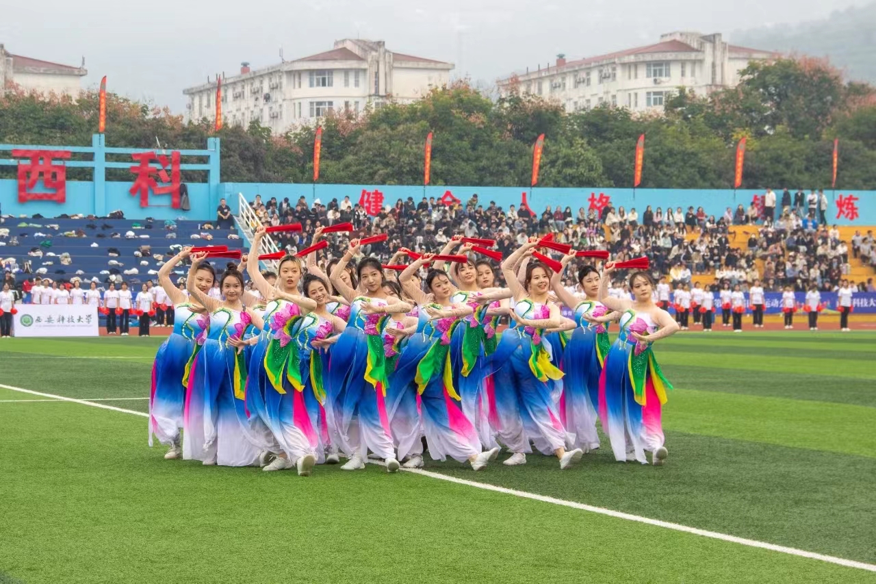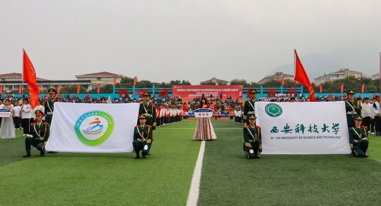 伴随着雄壮激昂的《运动员进行曲》,国旗护卫队、校旗方阵、会旗方阵、裁判员方阵、各学院运动员方阵、教职工方阵及自行车方阵依次入场。他们迈着整齐稳健、铿锵有力的步伐经过主席台,展现出西科人励志图存、自强不息的精神风貌。