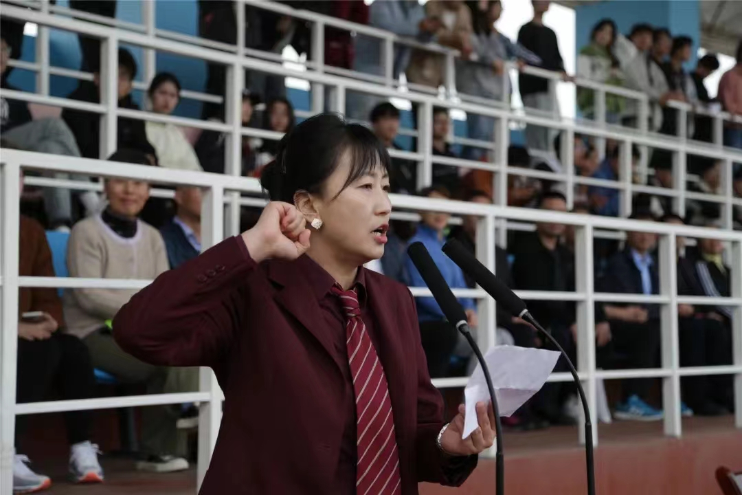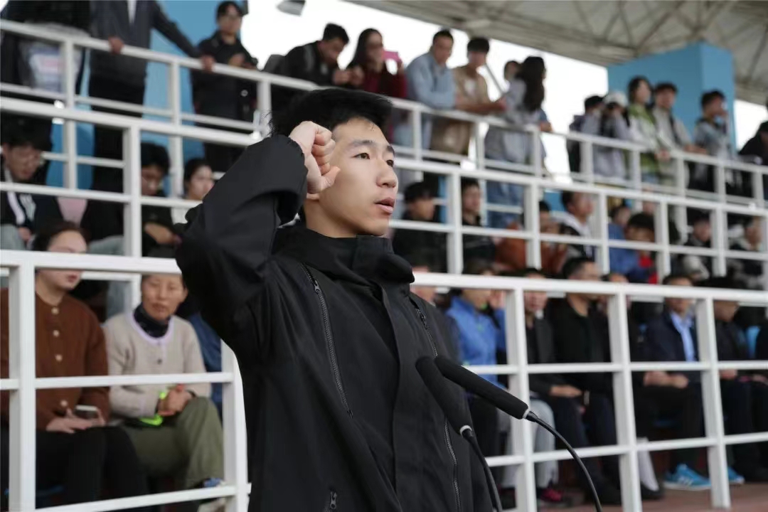陈春林主持,运动员和裁判员代表进行宣誓,他们表示将发扬励志图存、自强不息的学校精神,恪守体育职业道德,遵守运动会竞赛规则,以饱满的热情投入到比赛和执裁的工作当中。