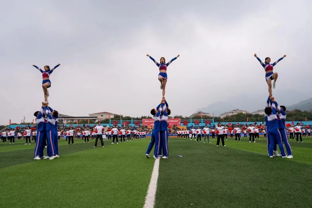 随后,进行了《响扇》《啦啦操》文艺表演。美轮美奂的响扇舞以优美的舞姿、独特的韵律展现了中华民族的优雅与大气。啦啦操集舞蹈、体操、音乐于一体,充分体现了团结协作的团队精神。