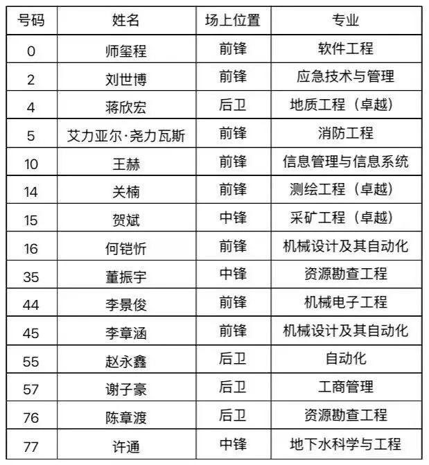 参加第27届CUBAL中国大学生篮球联赛陕西省预赛名单如下: