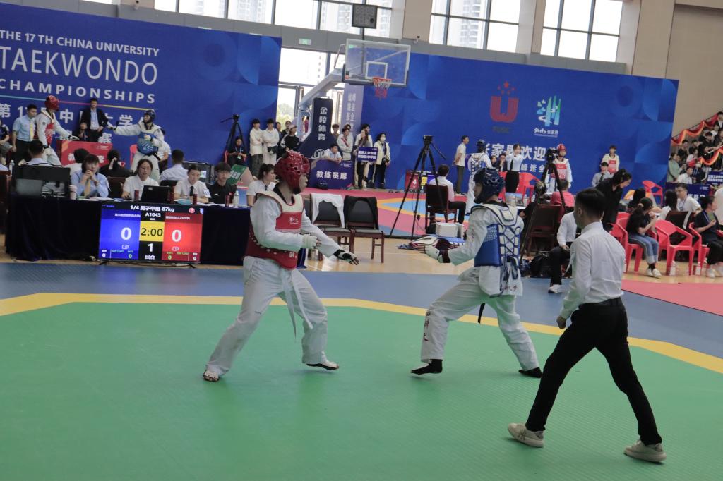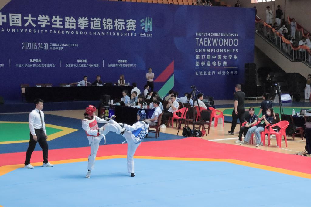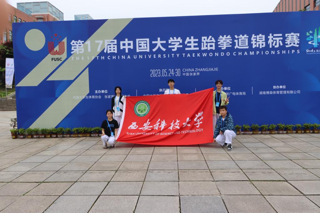 202352430日,由中国大学生体育协会主办的第17届中国大学生跆拳道锦标赛在湖南张家界举行。我校教练赵学军老师带领五名队员参加了比赛。其中董文拯获得男子甲组-87公斤级全国第三名,赵学军老师获得优秀教练员称号,赵聪获得优秀运动员称号。