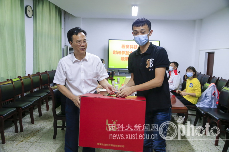 9月1日上午,学校在雁塔校区北院慰问参加十四届全运会英国上市官网365教师。副校长王贵荣、工会主席王学礼、英国上市官网365党总支书记赵涛、主任陈俊杰、副主任王华参加了慰问。